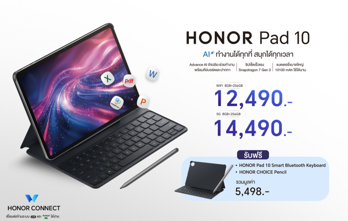 เปิดตัว! HONOR Pad 10 แท็บเล็ตสุดคุ้ม ยกระดับการทำงานและเรียนด้วย AI จอใหญ่ แบตอึด ชิปเซ็ตแรง พร้อมคีย์บอร์ด-ปากกา ในราคาเริ่มต้น 12,490 บาท