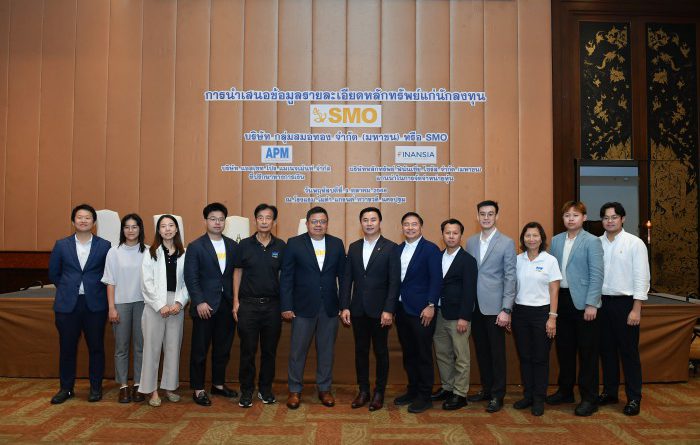 นายกิตติพงษ์ พวงมาลา ประธานเจ้าหน้าที่บริหาร นายกุศล ศรีเปารยะ ประธานเจ้าหน้าที่บริหารการเงิน บริษัท กลุ่มสมอทอง จำกัด (มหาชน) หรือ SMO หนึ่งในผู้นำในการผลิตและจำหน่ายน้ำมันปาล์มดิบของประเทศไทย ซึ่งมีโรงงาน 4 จุดครอบคลุมพื้นที่ยุทธศาสตร์สำคัญของปาล์มน้ำมัน และธุรกิจผลิตและจำหน่ายไฟฟ้าจากเชื้อเพลิงก๊าซชีวภาพ พร้อมด้วยดร.สมภพ ศักดิ์พันธ์พนม ประธานกรรมการ นายสุริยา ธรรมธีระ รองกรรมการผู้จัดการ บริษัท แอสเซท โปร แมเนจเม้นท์ จำกัด (APM) ในฐานะที่ปรึกษาทางการเงินและนายภควัฒน์ ตุลยนิติกุล ผู้อำนวยการอาวุโส บริษัทหลักทรัพย์ ฟินันเซียไซรัส จำกัด (มหาชน) ในฐานะแกนนำการจัดจำหน่ายและรับประกันการจำหน่าย ร่วมนำเสนอข้อมูลธุรกิจ วิสัยทัศน์ ข้อมูลทางการเงิน และศักยภาพการเติบโตของบริษัท ให้แก่นักลงทุนในจังหวัดนครปฐม โดยมีนักลงทุนให้ความสนใจเข้าร่วมรับฟังข้อมูลเป็นจำนวนมาก ณ ห้องทวารวดี 1 โรงแรมไมด้า แกรนด์ ทวารวดี จ.นครปฐม