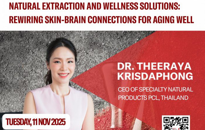 สำหรับการบรรยายของดร.ธีรญา ครั้งนี้มาในหัวข้อ “Natural Extraction and Wellness Solutions: Rewiring Skin-Brain Connections for Aging Well” ว่าด้วยการสกัดสารธรรมชาติและโซลูชันด้านสุขภาวะ ที่เชื่อมโยงความสัมพันธ์ระหว่างผิวหนังและสมอง เพื่อการดูแลวัยอย่างมีสุขภาพดี ซึ่งถือเป็นแนวคิดล้ำสมัยที่สะท้อนถึงทิศทางใหม่ของอุตสาหกรรมความงาม ที่ไม่ได้มองเพียง “ผิวภายนอก” แต่รวมถึง “สุขภาวะจากภายใน” ด้วย