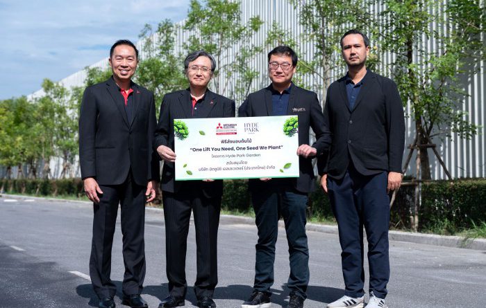 บริษัท มิตซูบิชิ เอลเลเวเตอร์ (ประเทศไทย) จำกัด โดย นายคัทสึยะ คาวาบาตะ กรรมการผู้จัดการ นำคณะผู้บริหารและพนักงาน มอบต้นแคนา ภายในโครงการบ้านเดี่ยว ไฮด์พาร์ค การ์เด้น วิภาวดี เพื่อเพิ่มพื้นที่สีเขียว ภายใต้กิจกรรมเพื่อสังคม “One Lift You Need, One Seed We Plant” หนึ่งลิฟต์ ที่คุณเลือก คืออีกหนึ่งต้นไม้ที่เราปลูก เพื่อโลกที่ยั่งยืน