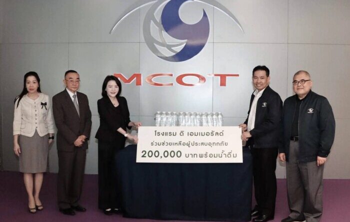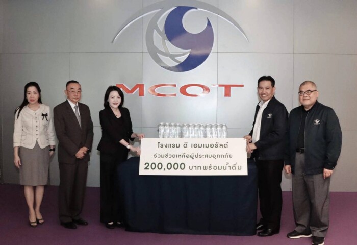 ฐิติมา ถิรกิจพงศ์ รองประธานบริหาร โรงแรม ดิ เอมเมอรัลด์ นำทีมผู้บริหารร่วมบริจาคเงิน 200,000 บาทพร้อมน้ำดื่ม เพื่อช่วยเหลือผู้ประสบอุทกภัยภาคใต้ ผ่านสภากาชาดไทย โดยมี สมหมาย สุวรรณวงษ์ รักษาการในตำแหน่งผู้อำนวยการใหญ่ บมจ. อสมท. เป็นตัวแทนรับมอบ และ กิตติพงษ์ ขันติรัตน์ รองกรรมการผู้อำนวยการใหญ่สายงานบริหารจัดการองค์กร ร่วมเป็นสักขีพยาน ณ อาคารปฏิบัติการ อสมท. เมื่อวานนี้